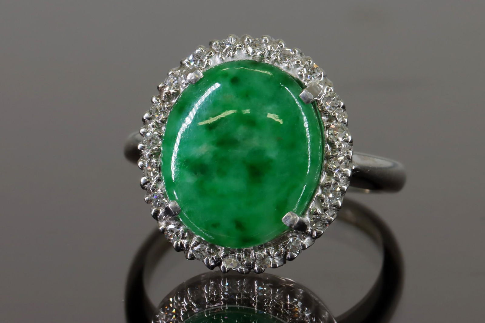 Diamond-Jadeite Jade Ring 13.95Ct 14k W/g