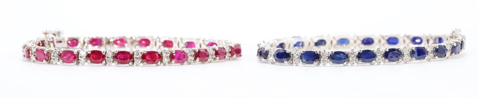 SoldSAPPHIRE, RUBY, DIAMOND & 18K GOLD BRACELETEnigma Collection sapphire, ruby, and diamond bracelet, featuring (90) round red rubies weighing approximately 2.22ctw, (90) round blue sapphires weighting approximately 2.22ctw and (300) round brilliSee Sold Price