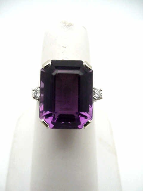 Sold14k Gold 7.95 Ctw Natural Amethyst & Diamond RingRef:231051020 // gold content:14k gold // ring size:7. 25us // // main gemstone:amethyst // shape:octagonal // carat weight:7. 9ct // color:purple // treatment:natural // // adjacent gemstone 2 : diamSee Sold Price