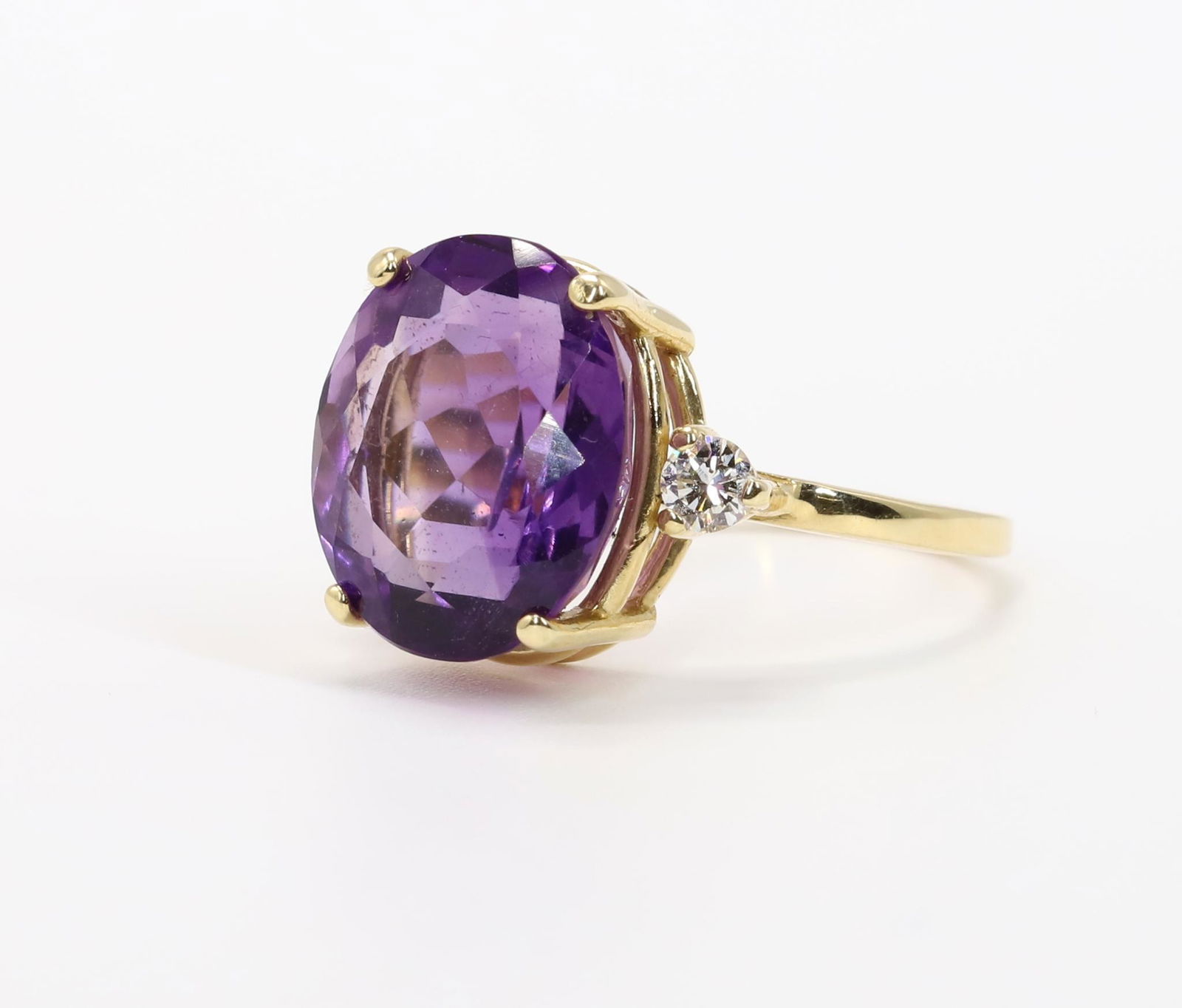 14k Gold 9.42 Ctw Natural Amethyst & Diamond Ring