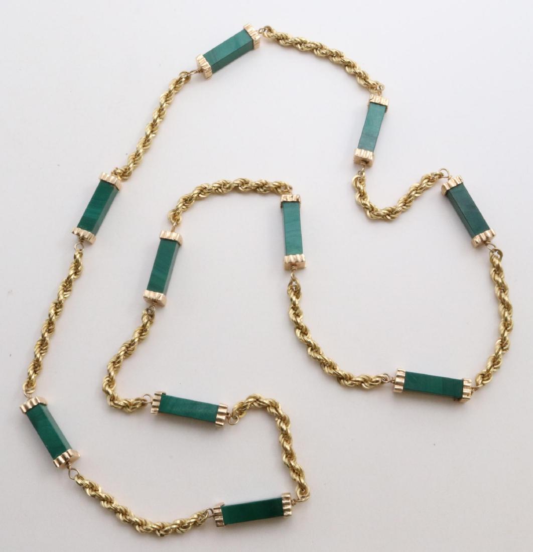 1980s Mauboussin Paris 18k Gold Malachite PENDANT NECKLACE VintageA malachite, diamond, and 14k gold beaded necklace4 days Left1950s 14k Gold Malachite Diamond Two Strand Necklace1 day LeftVintage Malachite Bead and Pendant NecklaceFeb 28, 2026Emerald And Diamond ChainFeb 27, 2026A jade and 14k gold beaded necklace3 days Left14K YELLOW GOLD CLASP & 3MM BEADS, 8MM NEPHRITE JADE, NECKLACE 21" 44.1G5 days LeftVintage Graduated Green Malachite Gemstone Bead Necklace 28 Inch LengthMar 05, 2026Single Strand 3.8mm Plain Emerald Beads NecklaceFeb 25, 2026Malachite Necklace - 10 mm BeadsAvailable to Buy NowVintage Chinese Malachite Bead NecklaceFeb 28, 2026Single Strand 3.8mm Plain Emerald Beads Necklace12 hrs Left14 Yellow Gold and Beaded Malchite Single Strand NecklaceMar 15, 2026Marked Sterling (925) Malachite Knotted Necklace5 days Left7.25 Cts Green Agate & White Topaz 18KGP Necklace3 days Left0.82 ct Green Agate & Diamond Designer Necklace $8253 days Left