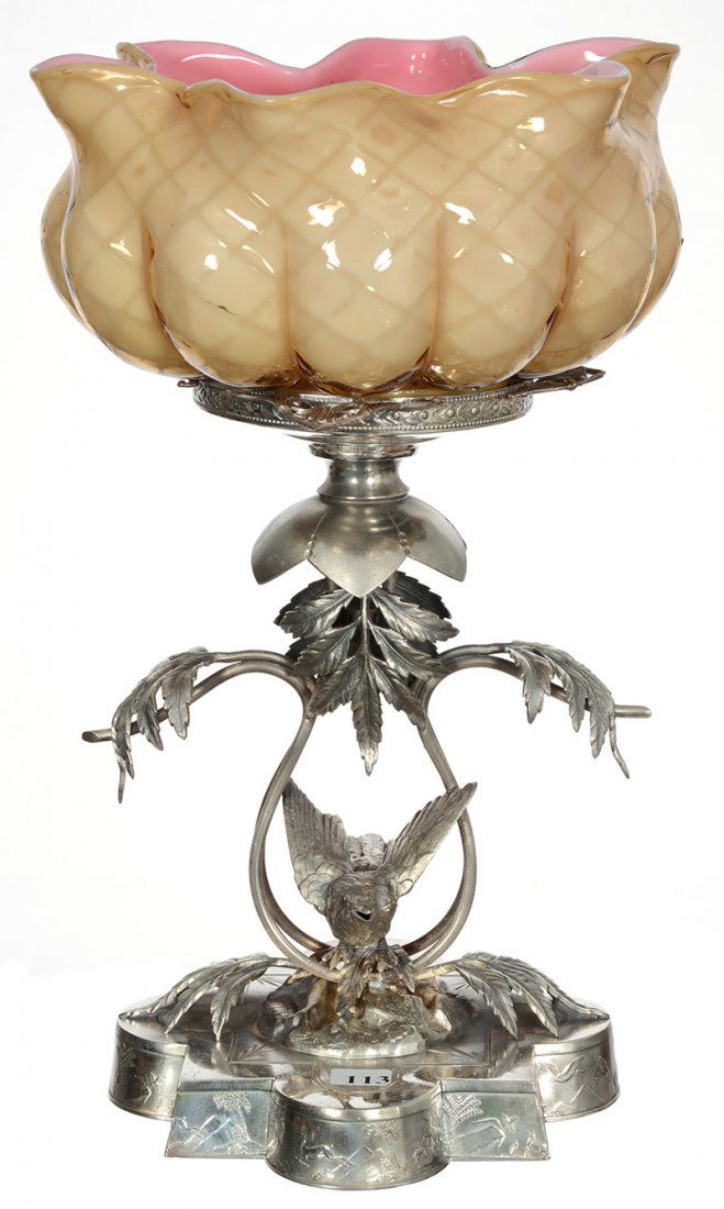 ASSORTED PRESSED LACY GLASS ARTICLES, LOT OF FOUR7 days LeftDecorative Metal Pedestal BasketMar 17, 2026QUOIZEL “SATIN LACE?? HURRICANE TABLE LAMP 19.5Mar 09, 2026Table Lamp, Strawberry Dome, American Brilliant Cut Glass by FryMar 07, 2026Table Lamp, Strawberry Dome, American Brilliant Cut Glass, Harvard & Engraved Floral PatternMar 07, 2026Cut Crystal Compote Centerpiece Bowl Sawtooth RimMar 28, 2026Vintage Painted & Satin Glass Shade Lamp6 days LeftCut Glass Table Lamp with Prisms, Late 19th / Early 20th CenturyMar 07, 2026LARGE SILVERPLATE CENTER PIECEMar 07, 2026Waterford Crystal Inishmaan Hurricane Lamp ElectricMar 28, 2026VITTORIO ZECCHIN Two-armed 2349 candelabra, execution by Cappellin Venini, Murano.6 days LeftSigned Art Glass Bowl with Aventurine Decoration14 hrs LeftTable Lamp, Mushroom Shade, American Brilliant Cut GlassMar 07, 2026Covered Compote, ABCG, Berry, Branch And Floral Design With Hobstar, Miter & Punty HighlightsMar 07, 2026Vintage Indiana Glass, King's Crown Thumb Print Open Compote With a Wide Platinum TrimWhoopi Goldberg | 19th Century Silver Plated EpergneMar 11, 2026