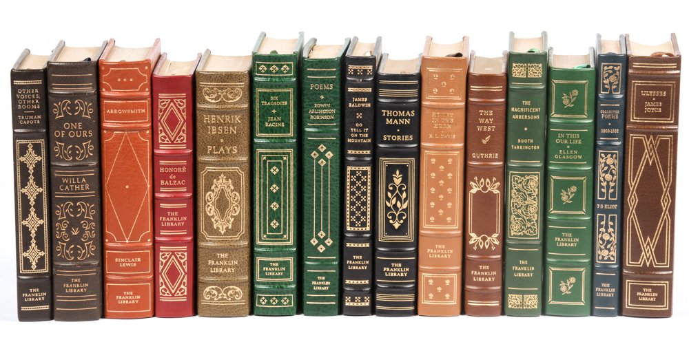 Books, American Illustrators Coll, Firsts (19pc)Mar 28, 2026(23) Books, Mostly from The Franklin LibraryMar 26, 202635 Assorted French / European Novels / Books5 days LeftGROUPING OF LEATHER BOUND BOOKSMar 28, 202622 Assorted Books / Novels5 days LeftBooks on Libraries, 8Apr 23, 2026Ten (10) Assorted Books Mid 19th to Early 20th CenturyMar 28, 2026GROUP OF MISCELLANEOUS ANTIQUE BOOKS2 days LeftGroup of 5 The Franklin Library Hardcover BooksApr 11, 2026