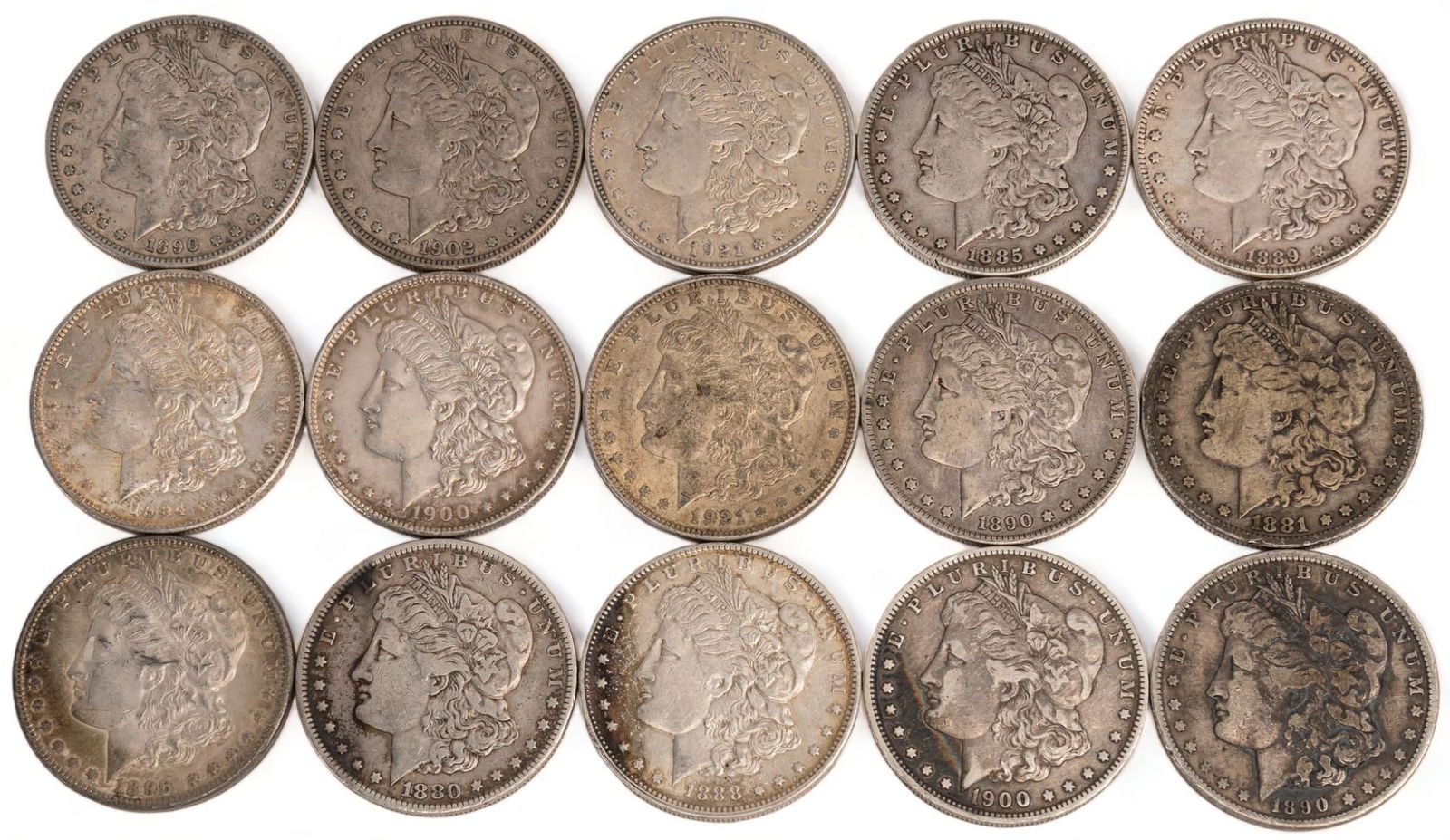 (11) U.S MORGAN SILVER DOLLARS, ALL FINE CONDITIONMar 28, 2026Lot of 10 Morgan Silver DollarsMar 28, 2026Lot of 10 Morgan Silver DollarsMar 28, 2026Eleven Morgan Silver dollars in choice BU/Uncirculated condition6 days LeftLot of 16 Silver DollarsMar 28, 2026Lot of 7 Morgan Silver DollarsMar 28, 2026(10) U.S. MORGAN SILVER DOLLARSMar 28, 202612 US Morgan Silver DollarsMar 22, 2026Lot of 19x 1 oz American Silver Eagles and 1x 1921-D Morgan Silver DollarMar 28, 202612 US Morgan Silver DollarsMar 22, 2026Ten Morgan silver dollars6 days Left1889 & 1921 US Silver Morgan Dollars, 35 days Left(6) Assorted Morgan DollarsMar 24, 202612 Morgan Silver Dollars6 days Left(3) MORGAN DOLLARS1 day LeftASSORTED 90% SILVER MORGAN DOLLARS - (8)Mar 28, 2026