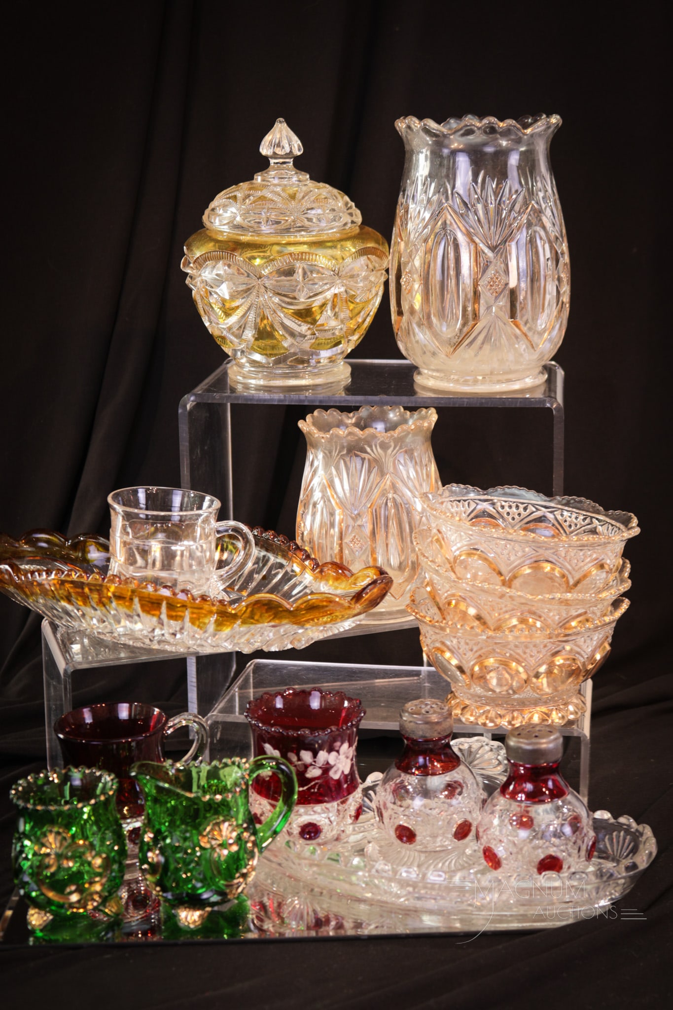 Estate Lot of 14 Cut to Clear Hand Blown Crystal Champagne/Sherbets & CordialsMar 15, 2026Glassware Lot including Imperial, Imperlux, McKee, LE Smith, Heisey Ridgeleigh, Libbey, etc2 days LeftGlass Lot including Footed Cake Stand, Federal Glass Homestead Wheat snack set Glasses and trays2 days LeftSIX ANTIQUE CUT GLASS & CRYSTAL SCENT BOTTLES, ETC159 Lots AwayAssorted Glassware7 days LeftA Collection of Nine Green Empoli Glass ArticlesGroup of Assorted Cut glass/Candlewick Glassware250 Lots AwayFour Glass Articles512 Lots AwayGroup of Colored Glass Table Articles5 days LeftGroup of Assorted American Brilliant Period Cut Glassware252 Lots AwayA Group of Nine Glass Table Articles, Second Half 20th CenturyMar 15, 202612 EAPG Pressed Glass GobletsMar 18, 2026Set of Twelve Waterford Crystal Champagne/Sherbet Glasses, Clair Pattern207 Lots AwayNineteen Rogaska Glass Candlesticks5 days LeftFOUR CRYSTAL TABLE ARTICLES INCL. STERLING MOUNTEDMar 25, 2026Five Colorless Glass Covered Compotes5 days Left