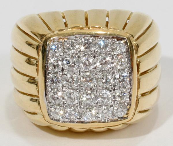 14K Yellow Gold and 0.83ct Diamond Mens Ring