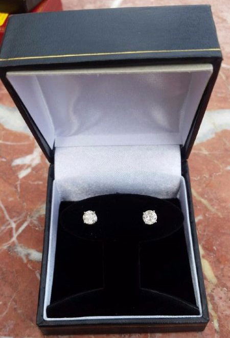 Sold1.50 ct. Natural Round Diamond Stud Earrings 14K W/GDescription Round Diamond Stud Earrings 14K White Gold 4-Prong Martini Setting, 1.50 CTW. Diamonds: 2 round brilliant cuts, 1.50 ctw, Color - G- SI/I Metal: 14K white gold. Weight: 3.41 grams. StampedSee Sold Price