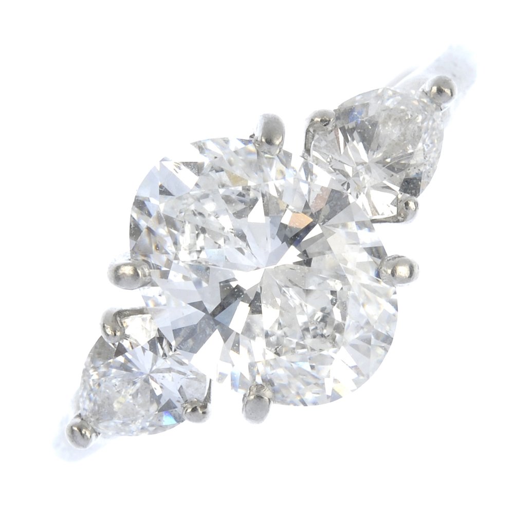 SoldAn 18ct gold diamond single-stone ring. TheAn 18ct gold diamond single-stone ring. The marquise-shape diamond, weighing 3.23cts, with pear-shape diamond sides and tapered shoulders. Accompanied by report number 2655741333, dated 18th May 2006,See Sold Price