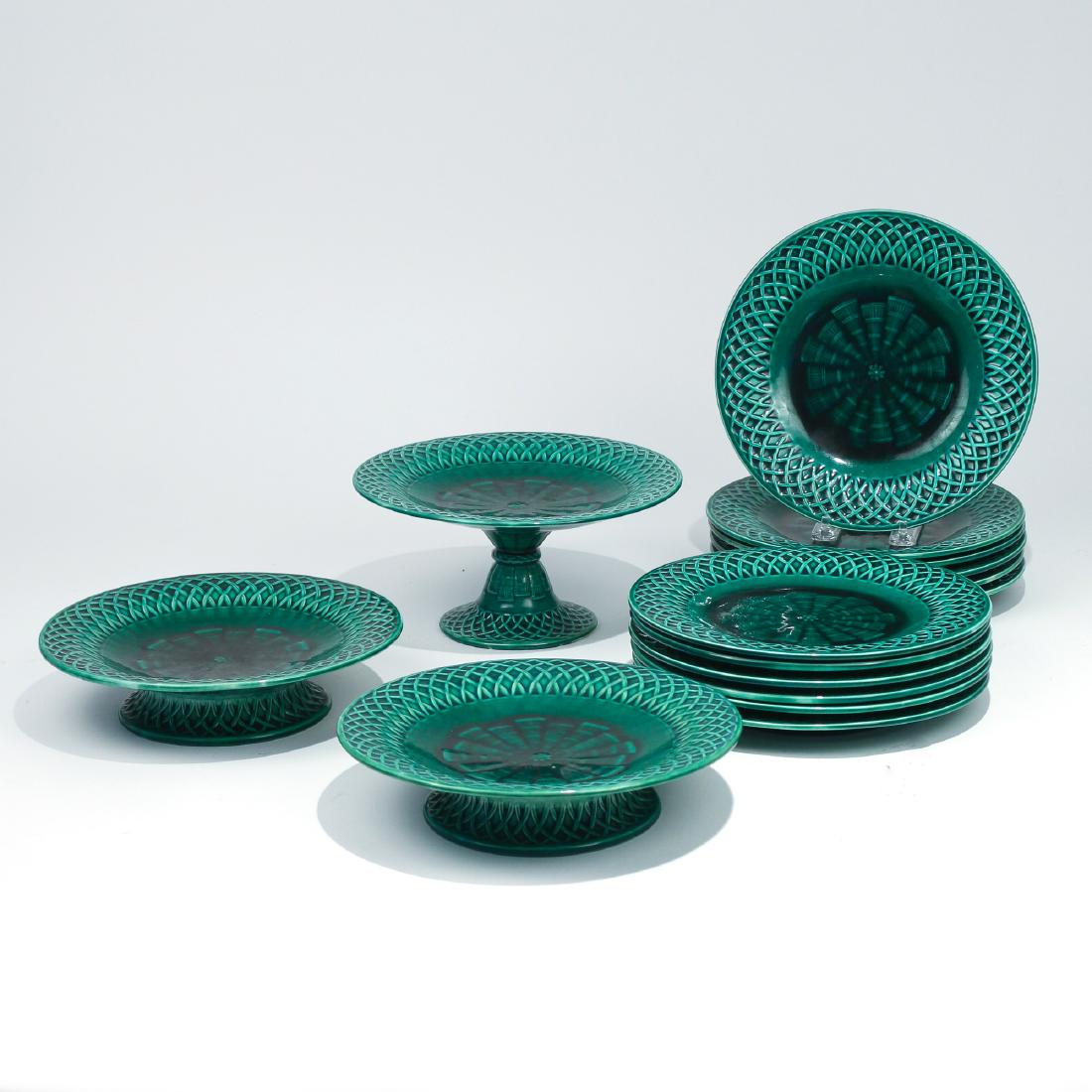 (15pc) MINTON MAJOLICA PLATES & COMPOTES