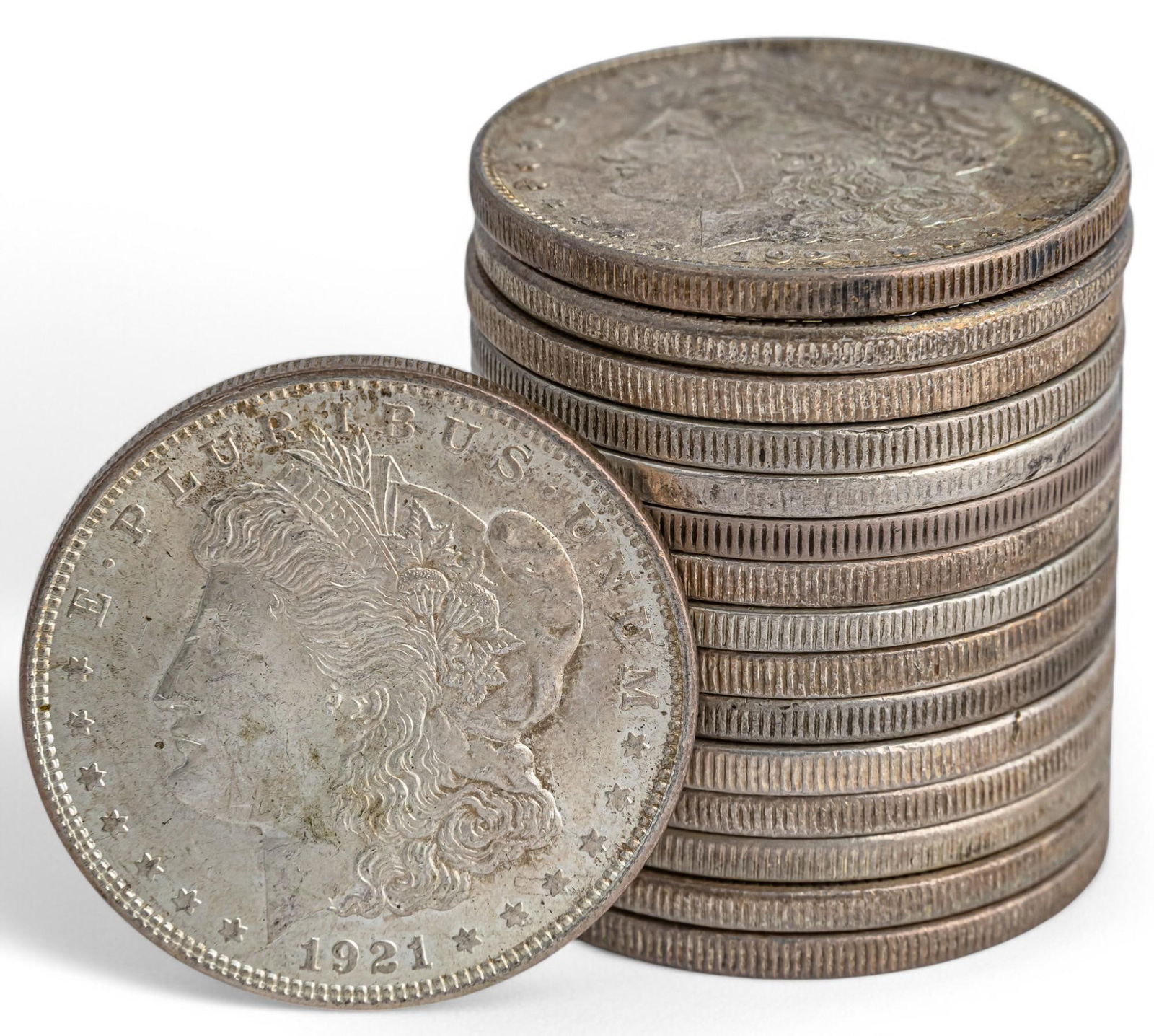 SoldGroup of 16 US Morgan & 4 Peace Silver Dollars, Total 20Grouping of Sixteen (16) U.S. Morgan and four (4) Peace 90% silver dollars. Includes Two (2) 1880 Morgans, One (1) 1882 Morgan, One (1) 1890 Morgan, Five (5) 1901 Morgans, Seven (7) 1921 Morgans, ThreSee Sold Price