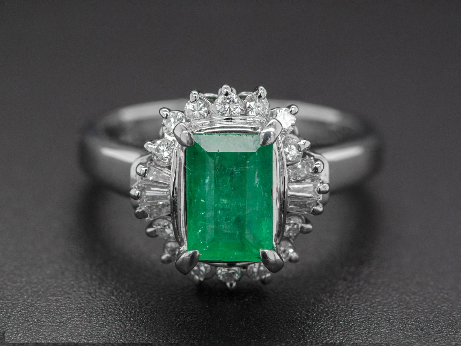 1.63tcw - Emerald & Diamonds - Platinum Ring
