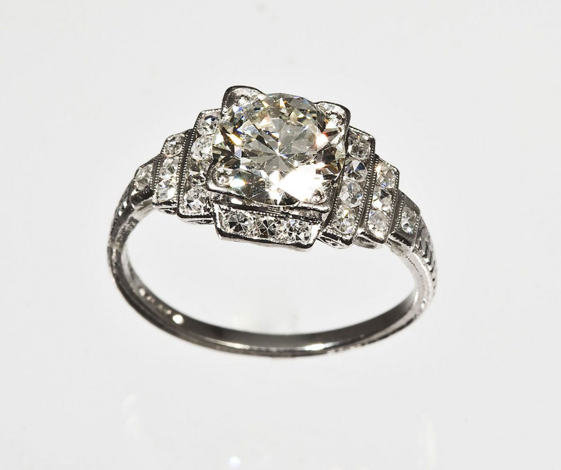 2 .75tcw natural diamond & platinum ring: center stone approx 1.25ct J-K/ VS-1 w/ 16 baguettes & 4Luther Auctions4.6(110)$2,000Mar 23, 2026