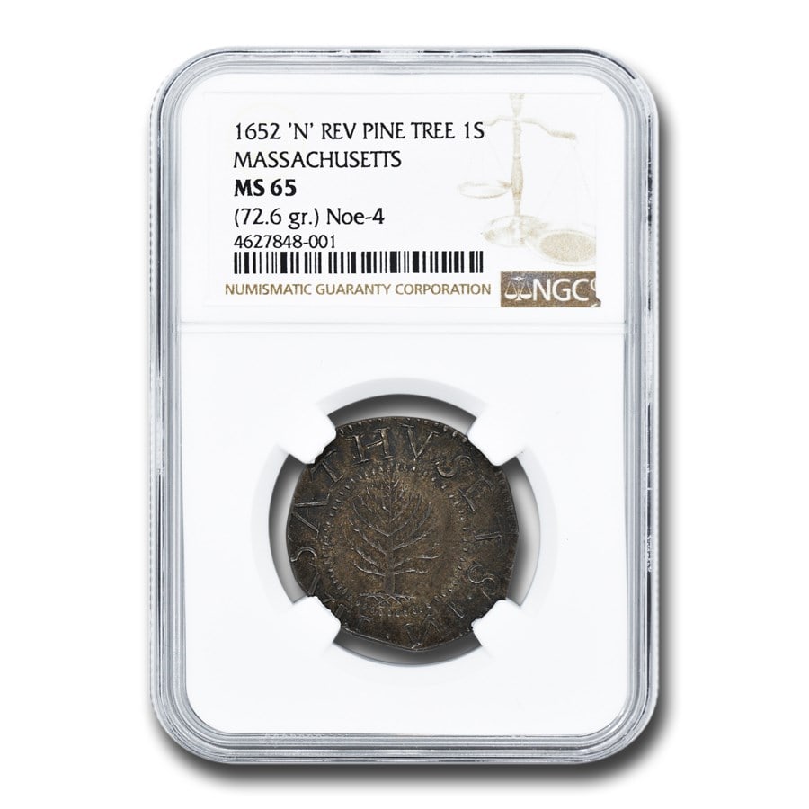 1652 Pine Tree Shilling Ms 65 Ngc (rev