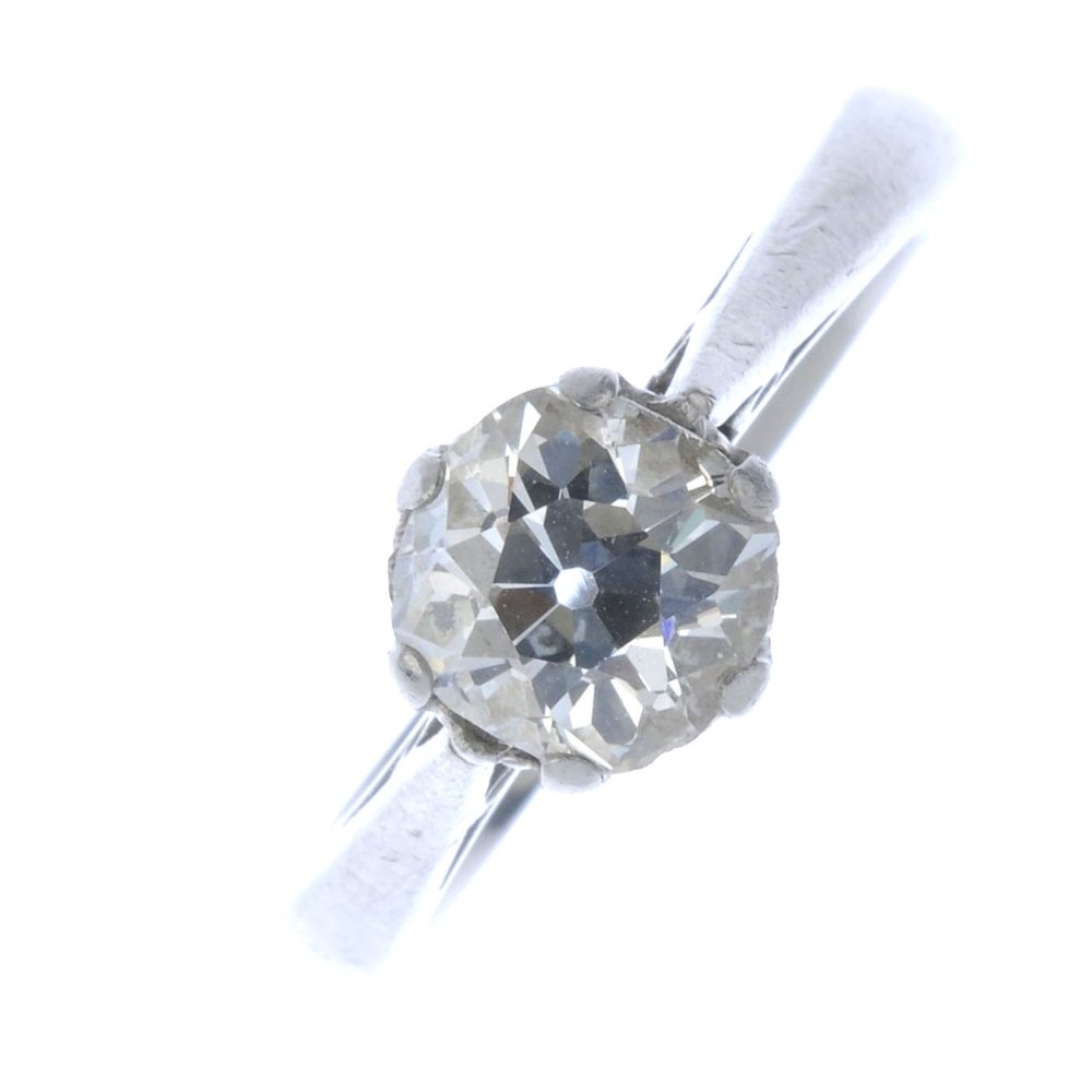 (16534) A platinum diamond single-stone ring. The