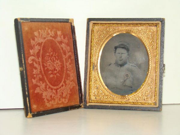 SoldTintype of Confederate soldier in Union caseTintype of Confederate soldier in Union case, supposedly George Washington Pettyjohn, 48th Virginia Infantry, 4"T x 3.5"WSee Sold Price