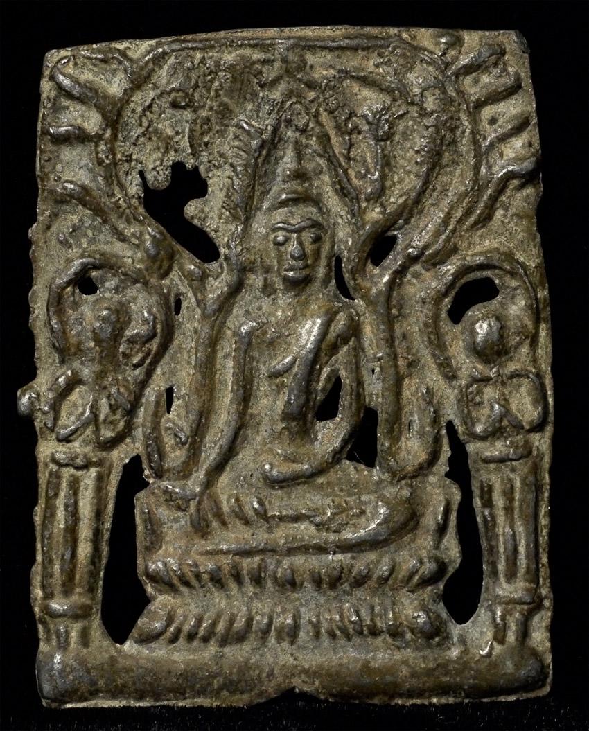 16thC Burmese Bronze Plaque/Amulet, 1.75"