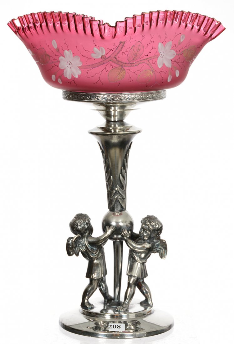 Monumental 18" Victorian Silverplate Art Glass Brides Bowl Centerpiece3 days LeftFenton Cranberry Opalescent Daisy & Fern Pickle Castor2 days LeftMagnificent & Rare 19th C. English Porcelain Centerpiece Retailer’s Mark Daniell1 day LeftQueen Anne Style .800 Silver CandlestickMar 07, 2026Meriden Silverplate Peachblow Decorated Art Glass Brides Basket3 days LeftVictorian Cranberry Glass Four-Trumpet EpergneMar 07, 2026LARGE SILVERPLATE CENTER PIECEMar 07, 2026Vintage Indiana Glass, King's Crown Thumb Print Open Compote With a Wide Platinum TrimPairpoint Puffy Lamp Rose Bouquet Art Nouveau Silvered Grape Base6 days LeftPairpoint Puffy Lamp Rose Bouquet Art Nouveau Silvered Grape Base4 days LeftBaccarat Medallion Crystal Hurricane Candle Holder268 Lots AwayWhoopi Goldberg | 19th Century Silver Plated EpergneMar 11, 2026Wave Crest Milk Glass Vase with Gilt Metal Mounts, Shield & Harp Mark, C.F. Monroe Co.Mar 07, 2026Table Lamp, Strawberry Dome, American Brilliant Cut Glass, Harvard & Engraved Floral PatternMar 07, 2026Hull Pottery Wildflower Pink Vase 81-83 days LeftJewel Box, Marked NakaraMar 21, 2026