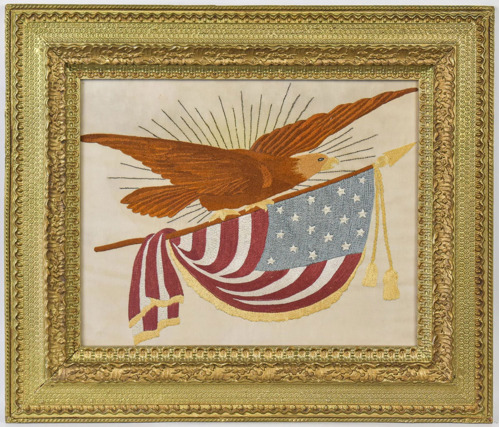 AMERICAN PATRIOTIC NEEDLEWORK FLAG5 days Left45-STAR UTAH STATEHOOD AMERICAN NATIONAL FLAG5 days LeftWONDERFUL 32 STAR FLAG WITH 2 ADDITIONAL STARS208 Lots AwayPatriotic American Eagle Feather PictureMar 09, 2026American 47 Star Worsted Wool and Cotton Flag, Ca. 1912, H 4' W 7'Mar 20, 202645-STAR AMERICAN NATIONAL UTAH STATEHOOD FLAG5 days LeftRough Riders Replica Flag3 hrs LeftRegt US Colored Troops Survivor Reunion OH Flag22 hrs Left"American Flag Eagle" by Nail Krbuljic (Bosnia, b.1971) Mixed Media4 days LeftSpanish American War Patriotic Silk Floss and Metallic Thread Eagle Banner with Misspelled MottoMar 08, 2026PATRIOTIC NEEDLEWORK "IN REMEMBRANCE OF MY CRUISE IN CHINA JAPAN AND PHILIPPINE WATERS" The2 days LeftSilk embroidery with eagles and war flags, China 1914Mar 13, 2026UNITED STATES AT ONE VIEW 1776-1846 PRINTED BROADSIDE4 days Left[MILITARIA] Cased Flag Relic from United States Embassy in Afghanistan4 days LeftRARE One-Year Only Nice 49 Star United States Flag (A)[WASHINGTON, George (1731-1799)]. Kerchief or pillow cover manufactured to mark the centennial ofMar 26, 2026