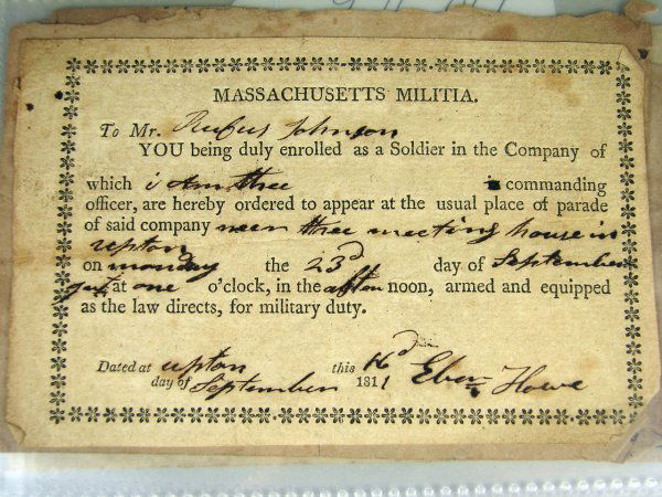 1799 New York Supreme Court Bail ManuscriptMass. Letters: Battle of New Orleans, Army Life, etc.Mar 02, 2026Massachusetts 34th Regiment Discharge & moreMar 02, 2026Foster Meekins 5th Sgt. 34th Mass appointmentMar 02, 2026Fort Constitution – War of 1812 Era Battalion Orders with 2 John A. Dix Orders – ManuscrSamuel Adams Militia Appointment Signed. One parFeb 26, 2026State of New Hampshire – Militia Brigade Orders – War of 1812 Era Document – 18151782 Superior Court related & other early documentsMar 02, 2026CSA Doc. Assistant Quartermaster appointmentMar 02, 2026George Washington Signed Medical Discharge, Moses DowningFeb 25, 2026Colonial Newport, RI debt collection and other docs.Mar 02, 2026Secretary of the Navy and officers signed docs.Mar 02, 2026Massachusetts Civil War Appointments, Furlough etcMar 02, 20261850 NH Appointment Cpt James Webster RiflemanMar 02, 2026ANTIQUE AMERICAN WAR OF 1812 SURVIVORS PENSION PAPER3 days LeftCaptain William Perkins 52nd Mass. AppoinmentMar 02, 2026