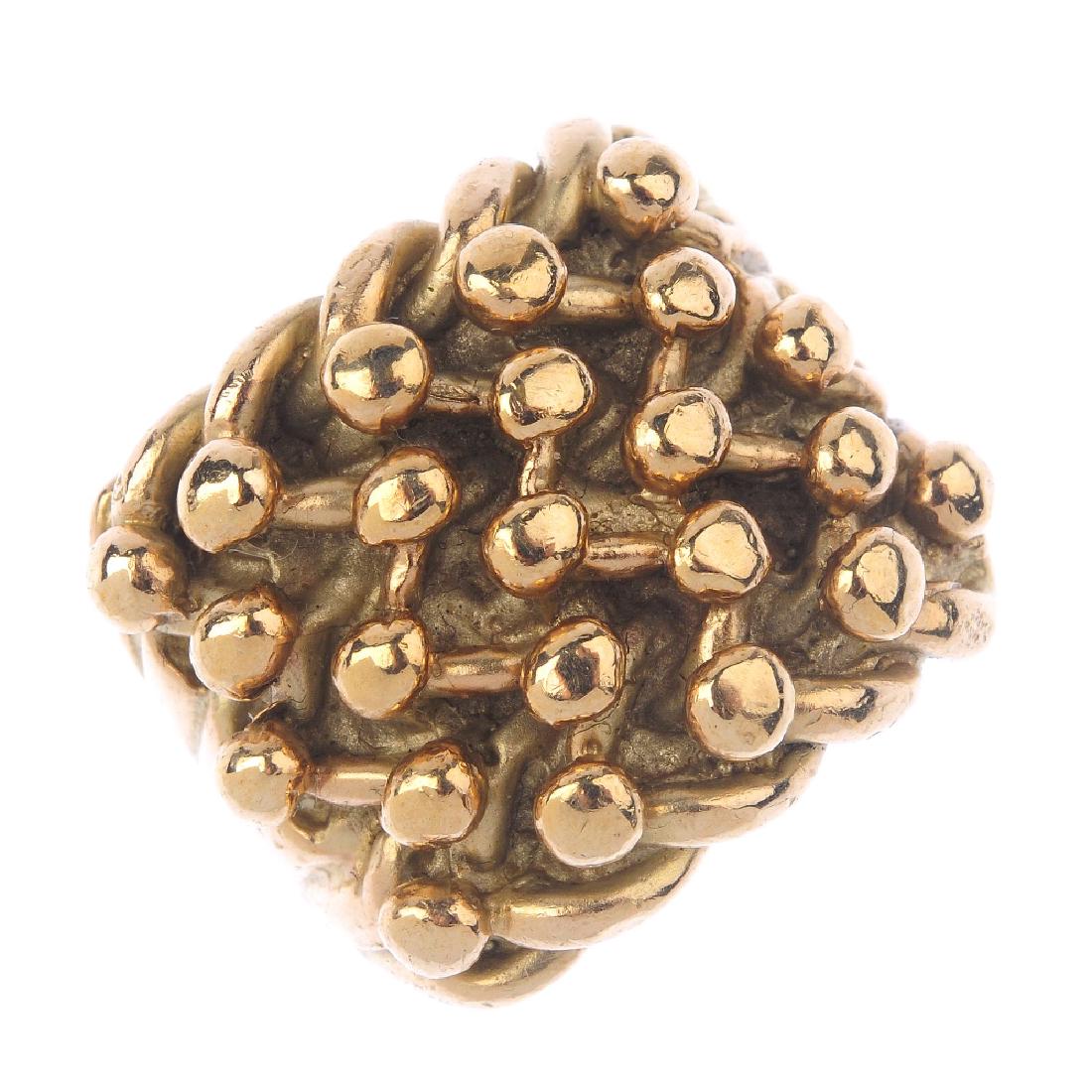(1723) A 9ct gold keeper ring. Hallmarks for Sheffield.