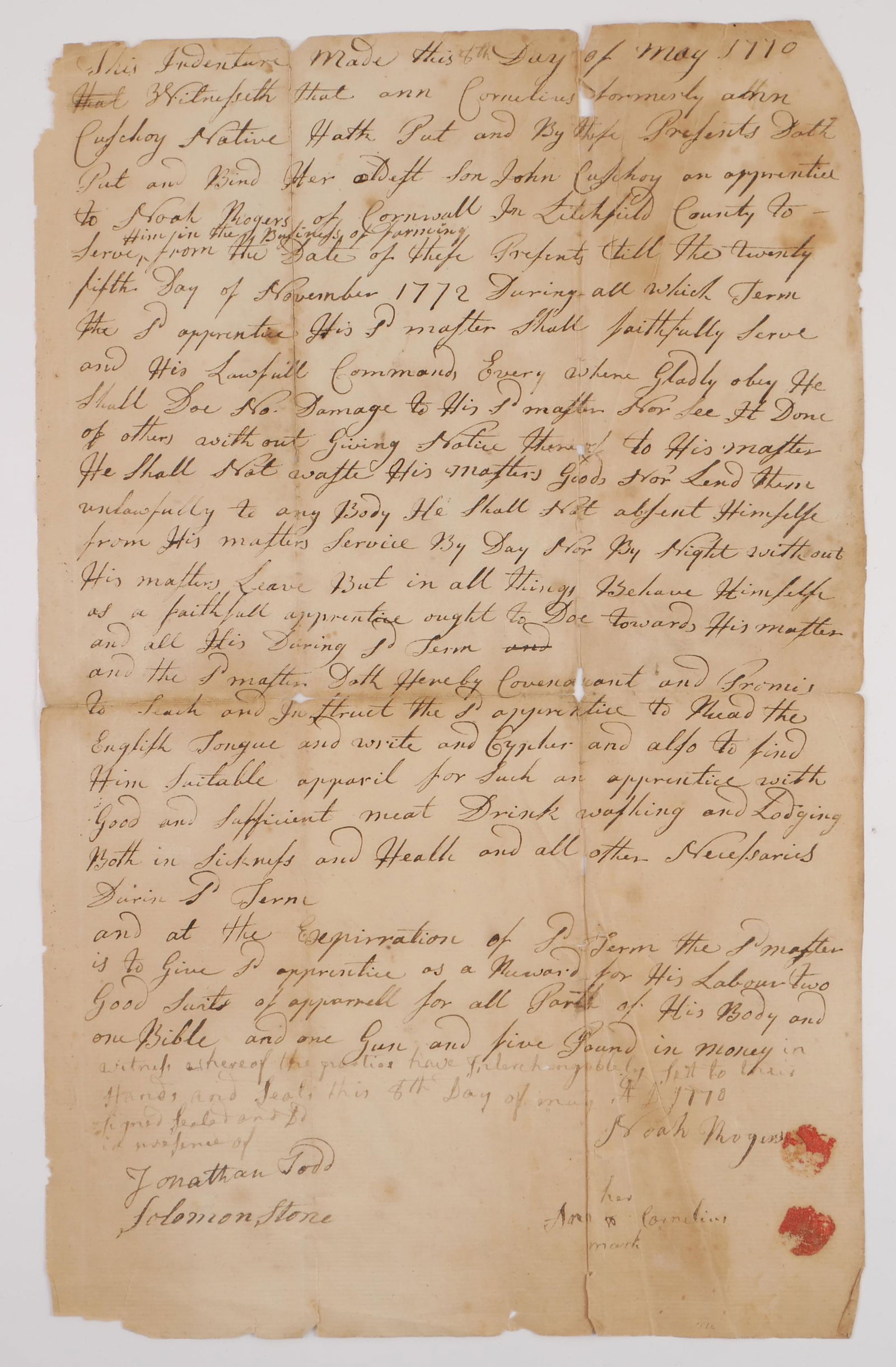 1770 Indenture Native American Servant Letter