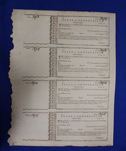 1783 Connecticut Colonial Currency Full Sheet