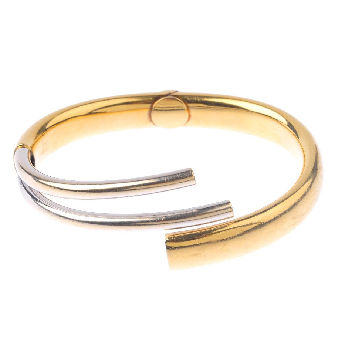 (1797) A bi-colour hinged bangle. Inner diameter