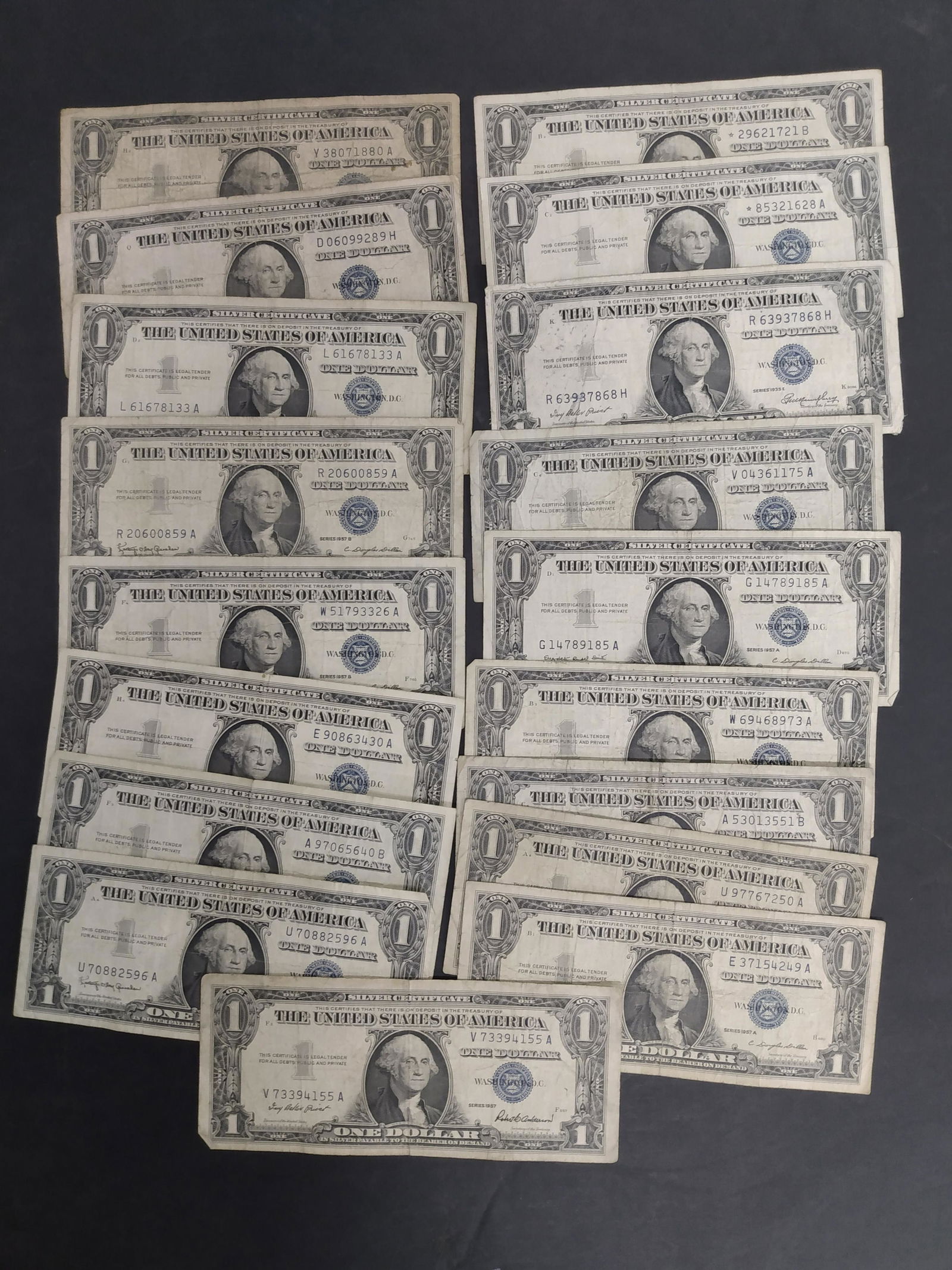 Lot of 10 Uncirculated 1935E $1 Silver Certificates - 5 Matched Pairs3 days LeftLot of U.S. $2 Two Dollar Bills Banknotes Circulated and Uncirculated2 days LeftLot of (6) American Silver CertificatesMar 15, 2026US 1957 $1 Silver Certificates, Paper, Friedberg 1619Lot of 8 - 1957/1957-B $1 Notes - Silver CertificatesLot of 8 - 1957 A/B $1 Notes - Silver CertificatesLot of 3 - 1935 E/F/G $1 Notes - Silver CertificatesSet of 9 Consecutive 1957-B $1 Silver Certificates Uncirculated US Notes1 day LeftUS 1957-1957B $1 Silver Certificates, Blue SealUS 1935 H $1 Silver Certificates, Paper, Fr. 1618Set of 10 Uncirculated 1957-B $1 Silver Certificates Consecutive Serial Numbers4 days LeftUS 1935-1957 $1 Silver Certificates, Paper, Fr. 1608, 1614, 1620US 1957 $1 Silver Certificates, Pick-1619VINTAGE U.S. CURRENCY,SILVER CERTIFICATES6 days Left37- Cull Silver CertificatesFeb 26, 2026US 1935-1957 $1 Silver Certificates, Paper, A Collection of Banknotes