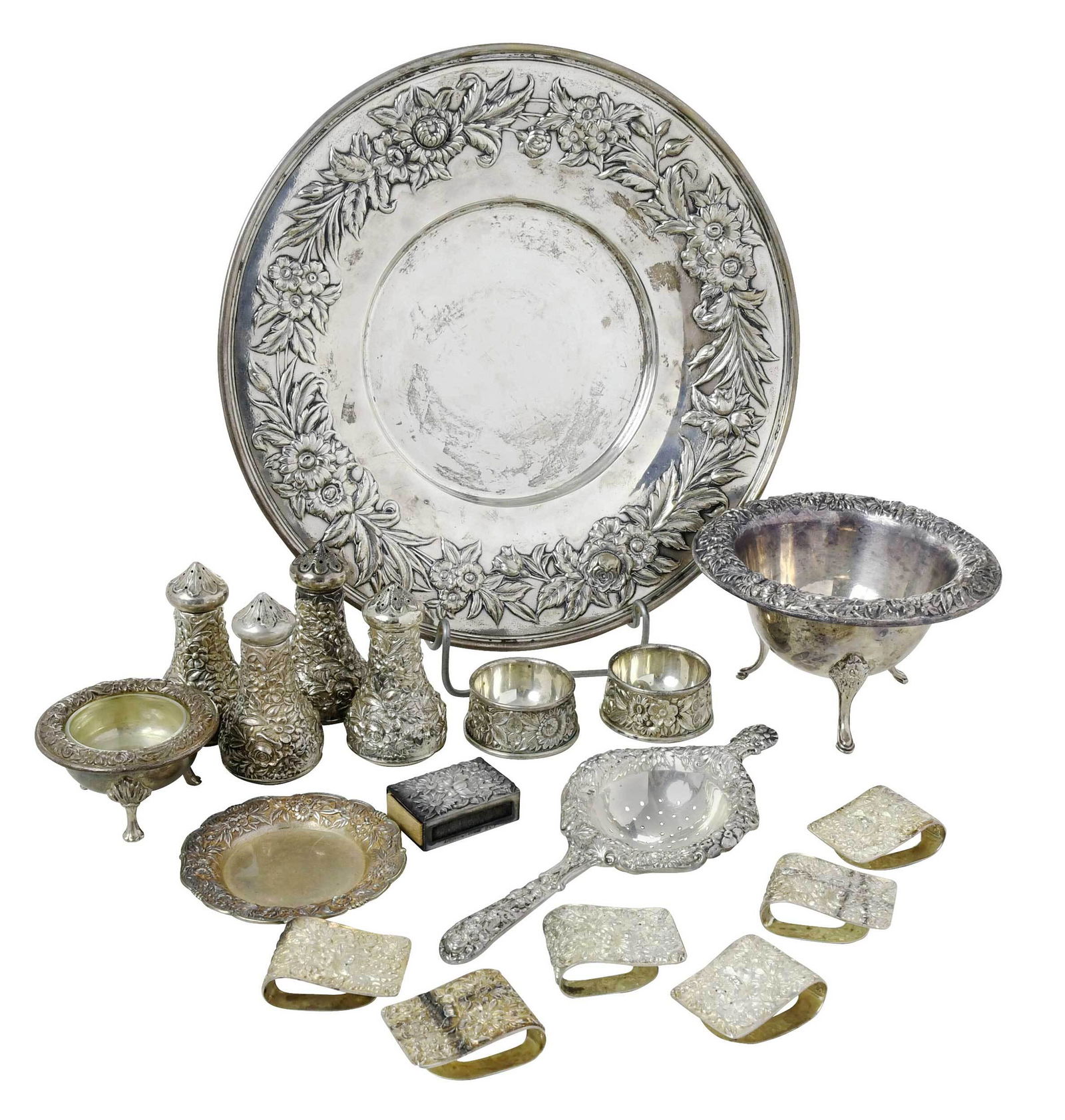 Large Silverplate Lot9 hrs LeftLot of 48 Pewter, Mugs, Plates, Porringers & MoreFeb 21, 2026Lot of Sterling SilverFeb 21, 2026Group Lot of Silverplate Items5 days LeftLot of Asst. Silverplate Dishes & Table Articles.10 hrs LeftMIXED SILVER LOT STERLING 900 AND SPANISH SILVER 835Feb 21, 2026(17) COLLECTION OF STERLING, .800 SILVER & WEIGHTED STERLING TABLE ARTICLESFeb 22, 2026Collection of silver consisting of pepper and salt shakers, jugs, bell, bowl and statue of a boy,Feb 15, 2026Reed & Barton, Etc. Silver Plate Tableware, 10 PcsMar 12, 2026A Collection of Latin American Silver Table ArticlesLarge Collection Silverplate Hollow Ware9 hrs Left22 Pieces Silver Plate Hollowware, Plus Flatware, Jimmy Carter ProvenanceFeb 25, 2026An Assembled Twelve Piece S. Kirk & Son Repousse Sterling Silver Desk Set5 days Left8 Sterling Silver Baby and Table ArticlesFeb 26, 202651 Pieces Sterling Repousse Style FlatwareFeb 25, 2026ANTIQUE AND VINTAGE SILVER PLATED TABLEWARESFeb 22, 2026