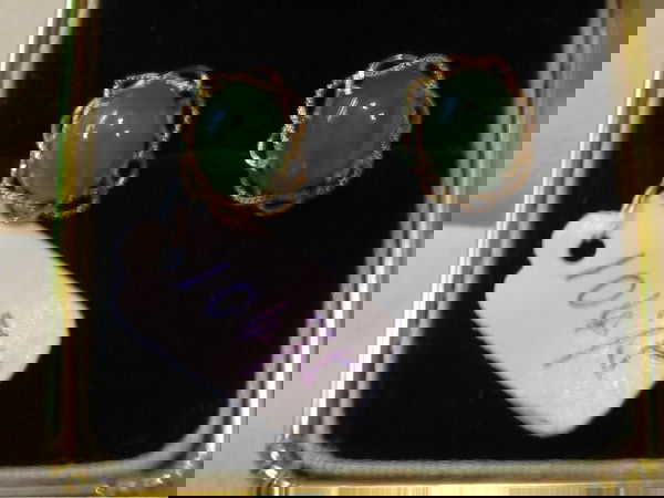 14K gold chrysoprase stud earrings. Marked 14K. 2.1 grams.Tremont Auctions4.6(313)$125(1 bid)5 days Left