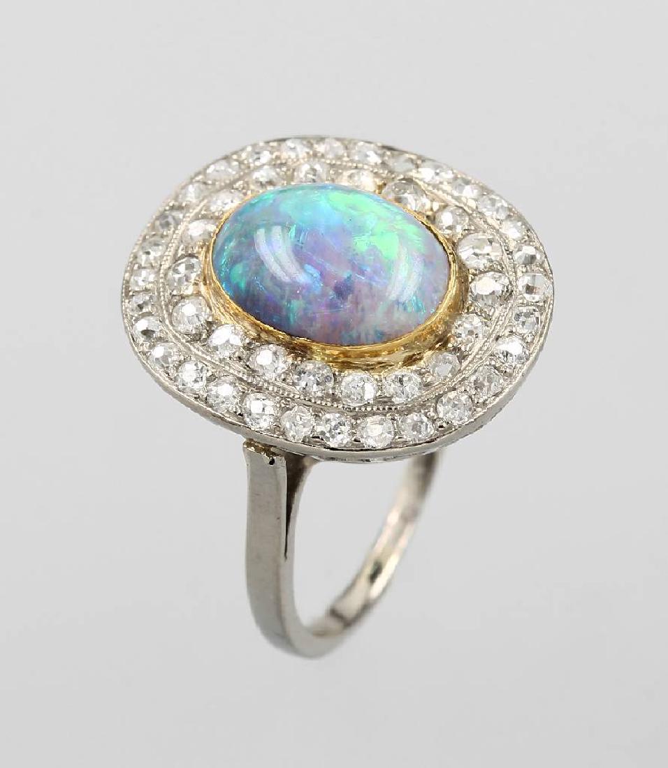 14k Gold 2.50 Ctw Natural Opal & Diamond Ring