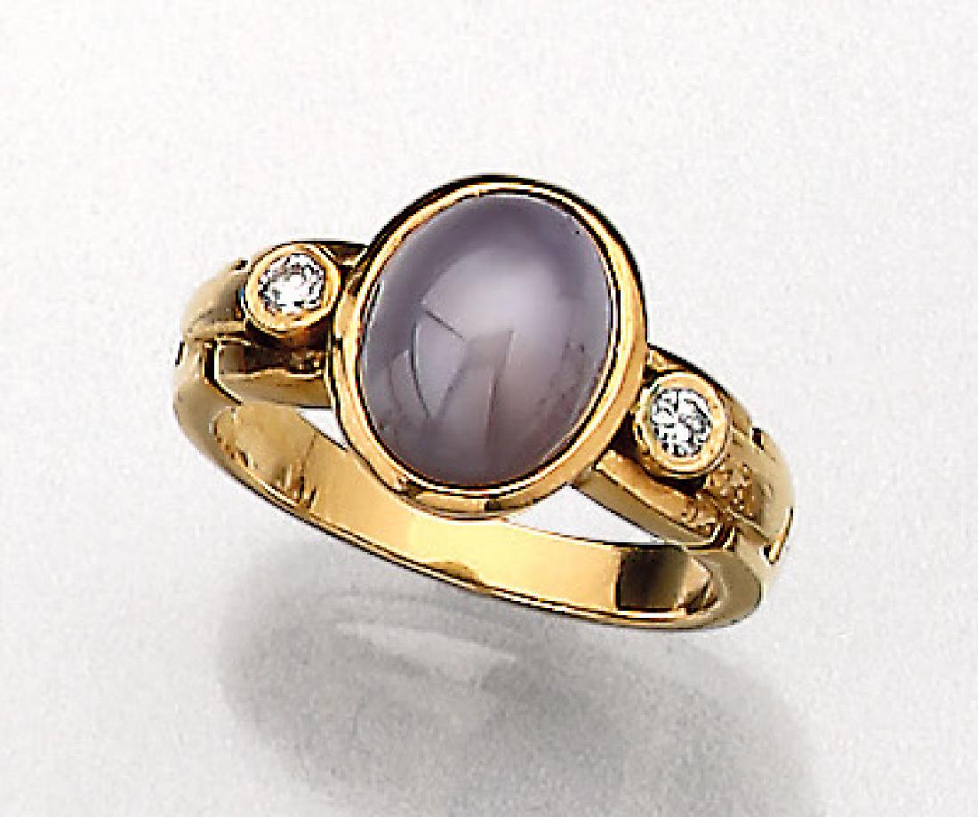 A STAR SAPPHIRE AND DIAMOND RING * an oval-shaped star sapphire of black tint cabochon, approx.Adam's Auctioneers4.3(12)€2004 days Left