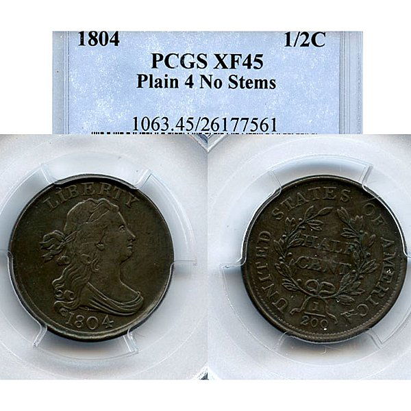 1804 Draped Bust Half Cent XF45 PCGS