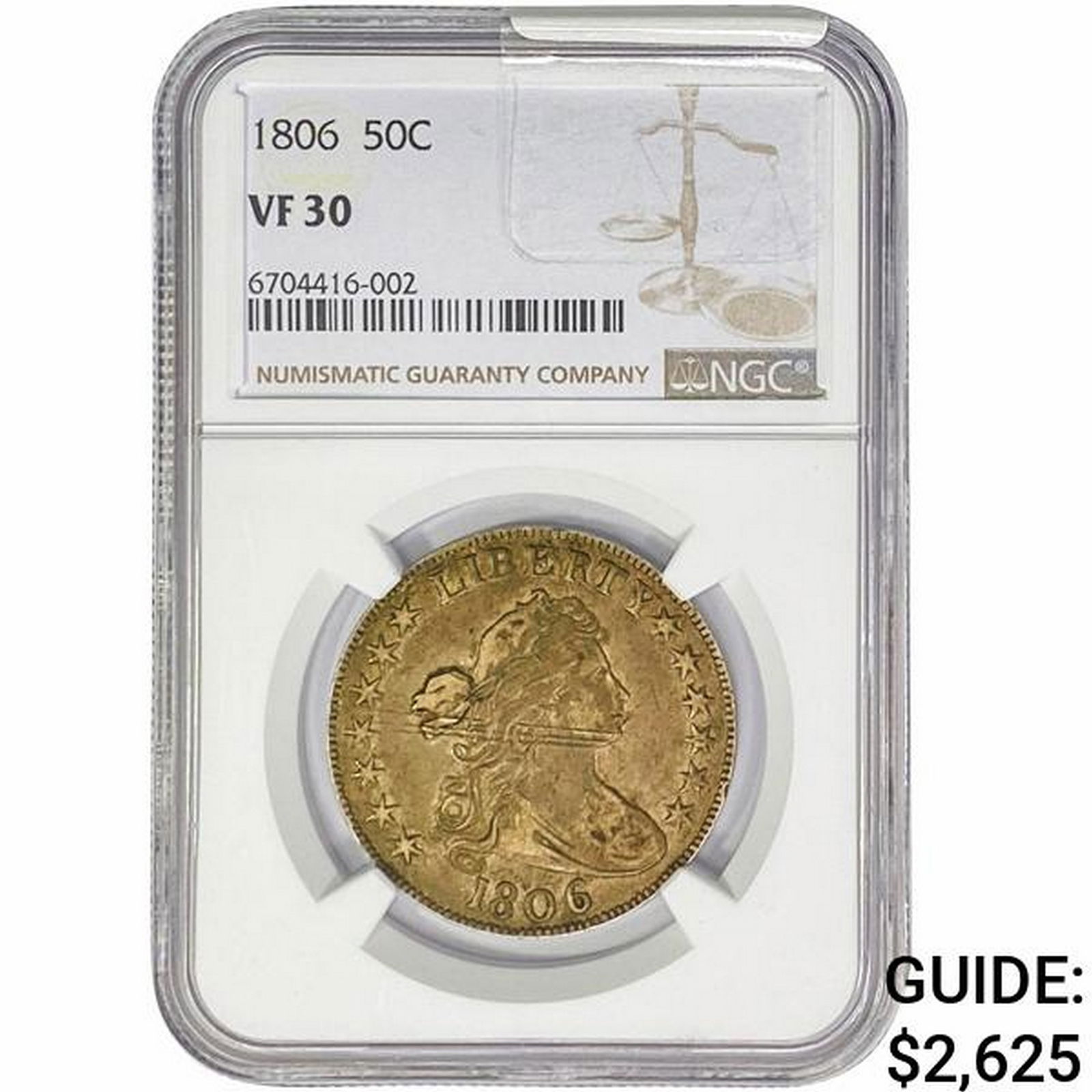 Sold***Auction Highlight*** 1806 Draped Bust Half Dollar O-120 R-3 50c Graded vf25 By SEGS (fc)***Auction Highlight*** 1806 O-120 R-3 Draped Bust Half Dollar 50c Graded vf25 By SEGS.See Sold Price