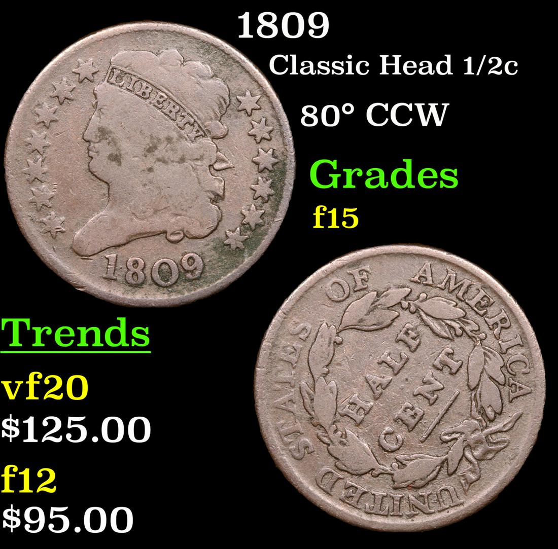 1809 Classic Head half cent 1/2c Grades f+