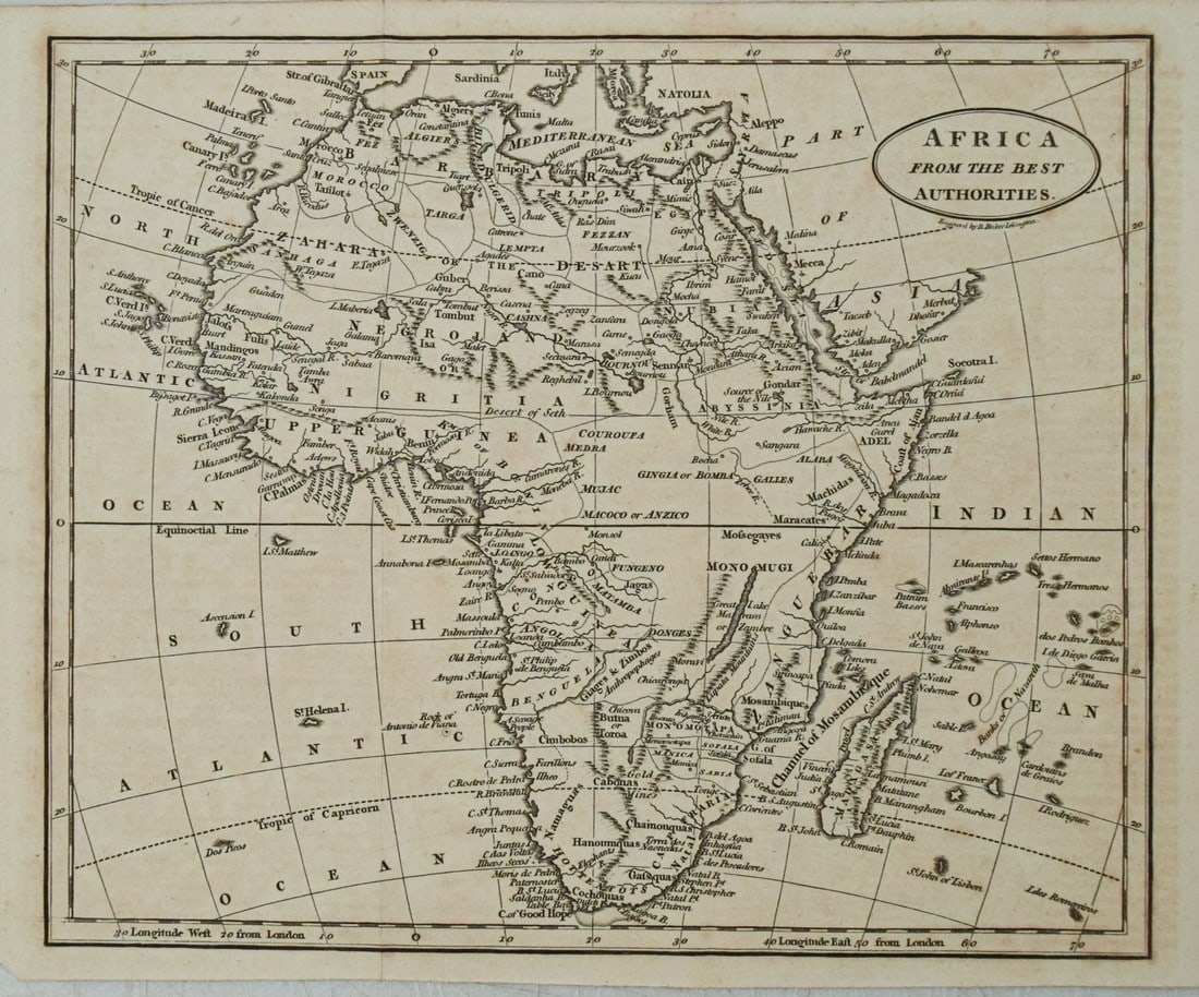 OGILBY (JOHN) Africa: Being an Accurate Description of the Regions of Aegypt, Barbary, Lybia, an...AFRICA - MAP VISSCHER (NICOLAS) Africae nova descr., [Amsterdam], 16521730s MAP of SOUTH AMERICA antique 21 by 24.5"1723 Dampier Map of Voyages to Brazil, Australia and Eat Indies -- Voyage du Cap. Dampier a la N.Thomas Leman 1818 Antique 207 Years-Old Map of Roman Roads in Britain.Thomas Leman 1818 Antique 207 Years-Old Map of Celtic and Belgic Tribes in Britain.1706 Aa Map of Middle East, India to Malaysia -- Reys-Togt van Aleppo over Ormus, door Indien tot in1794 de la Rochette Map of the English Channel and Bay of Biscay -- A Chart of the British ChannelWalkers Geography 1795 Map of Africa2 days LeftAFRICA - SPEED (JOHN) Africae, 1626; MERCATOR (GERARD) Africa ex magna orbis terre, c.1611, hand...Walkers Geography 1795 Mercators Projection Map2 days LeftVintage 1939 George F Cram Pull Down Map of Africa Ideal Series7 days LeftAN 1807 MAP OF INDIA, HEINRICH CHRISTIAN ALBERS, AFTER AARON ARROWSMITH, GERMANYMar 22, 2026Map of Africa - 1850'sMar 28, 2026Map of the European Settlements of the coast of Africa… by John Lodge 1781Conrad Malte-Brun (1775–1826) – Map of the World according to Herodotus1 day Left