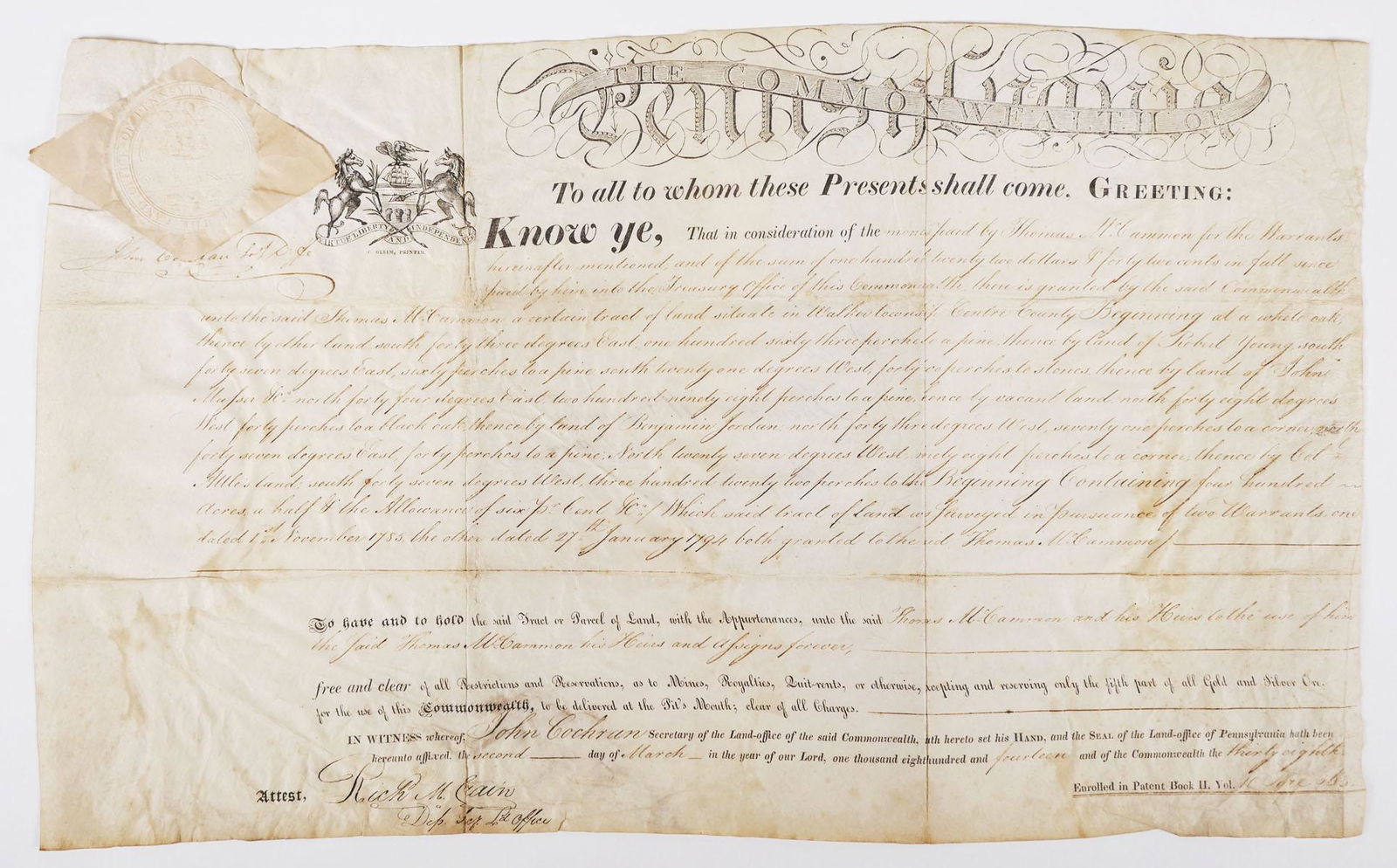 1814 Pennsylvania Land Contract