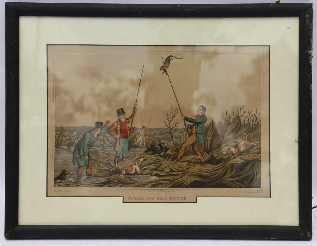 1820 SPEARING THE OTTER FRAMED COLORED ENGRAVING
