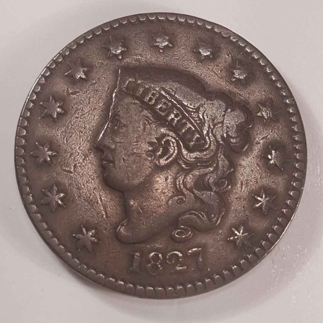 1827 VF Large Cent Coronet Head Copper Coin Uncertified