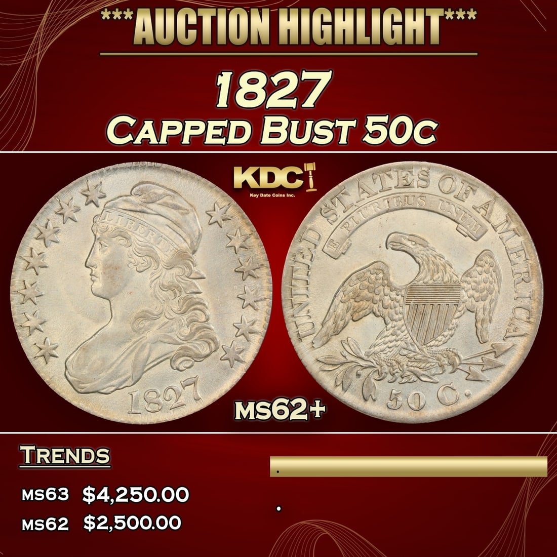 1827 Capped Bust Half Dollar 50c ms62+ USCG