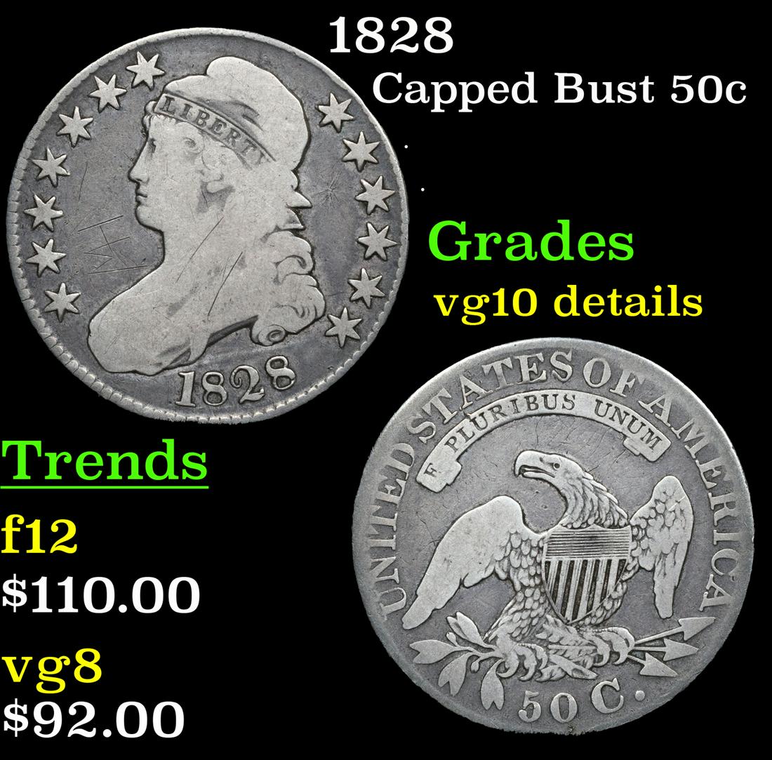 1828 Capped Bust Half Dollar 50c Grades vg details