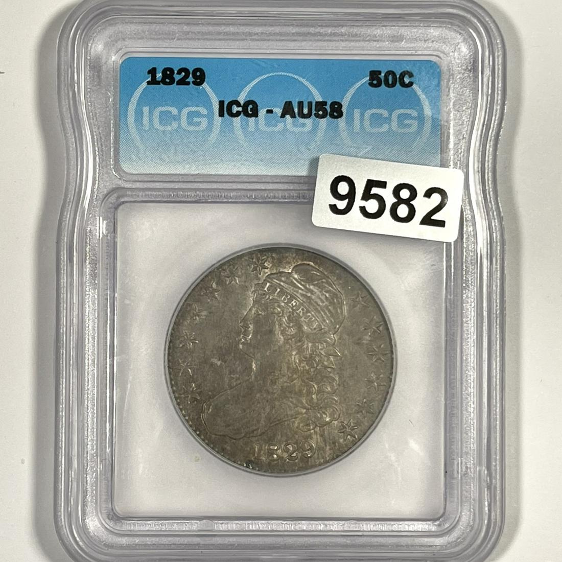 Sold***Auction Highlight*** 1829 Capped Bust Half Dollar***Auction Highlight*** 1829 Capped Bust Half Dollar 50c Graded au58+ by SEGS.See Sold Price