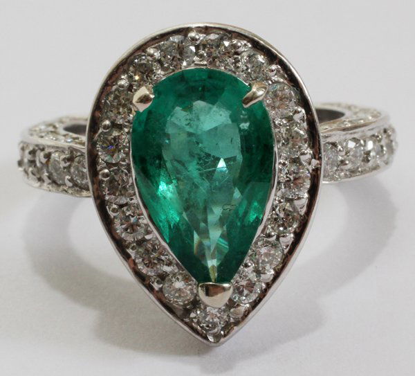 14K White Gold 1.42ct Emerald and 1.17ct Diamond Ring