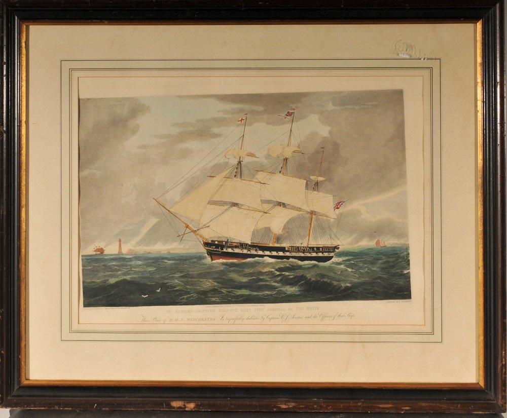 1830 Hand-Colored Print, H.M.S. Winchester