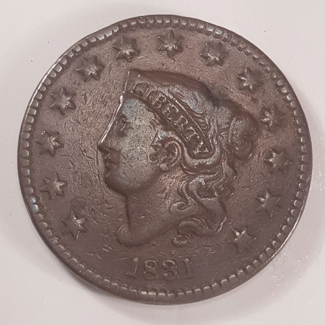 1829 Large Cent Coronet Head Copper VG Uncertified