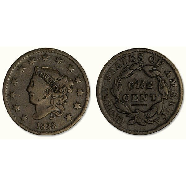 1838 Coronet Head Large Cent HIGH GRADE