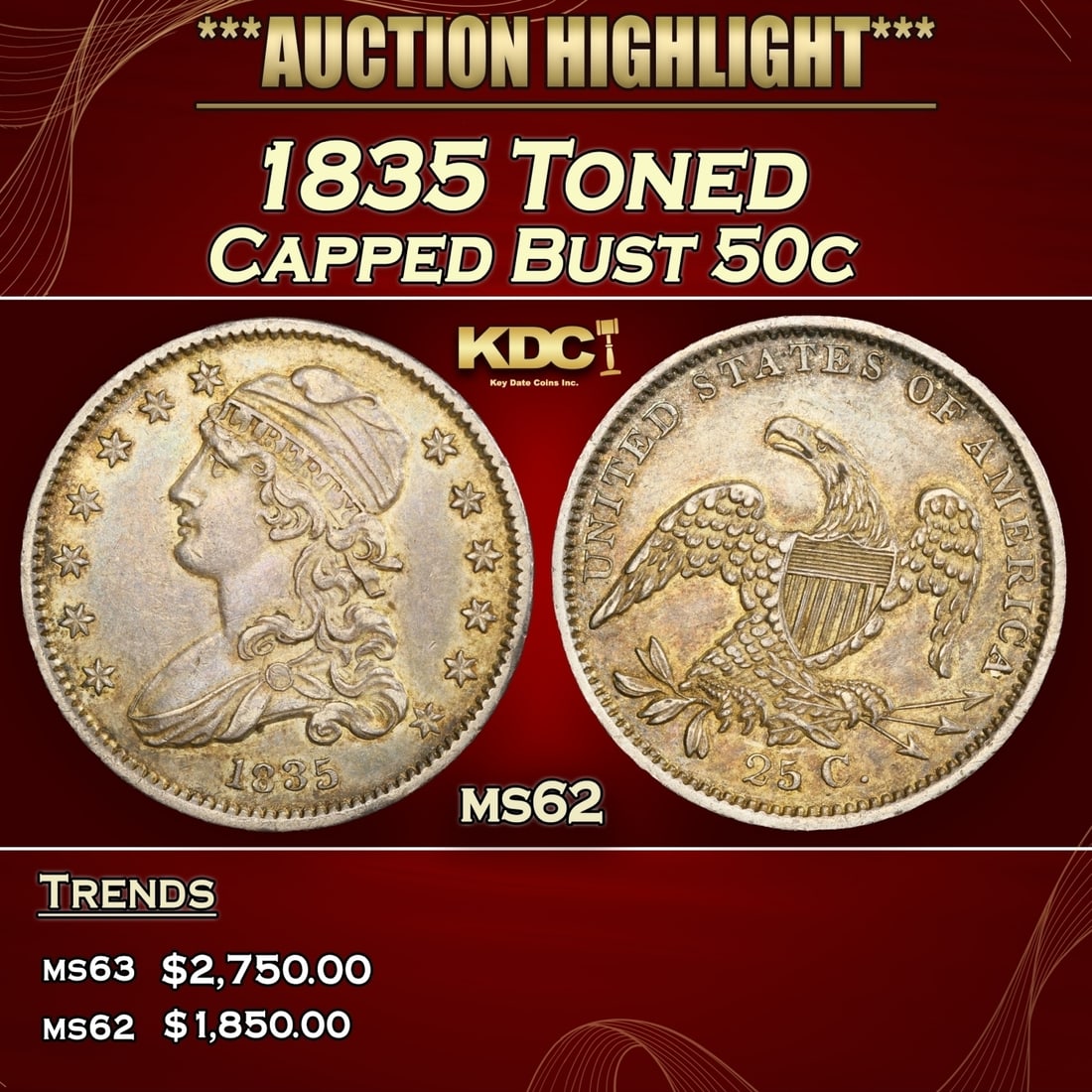1835 Capped Bust Half Dollar Toned 50c ms62 USCG