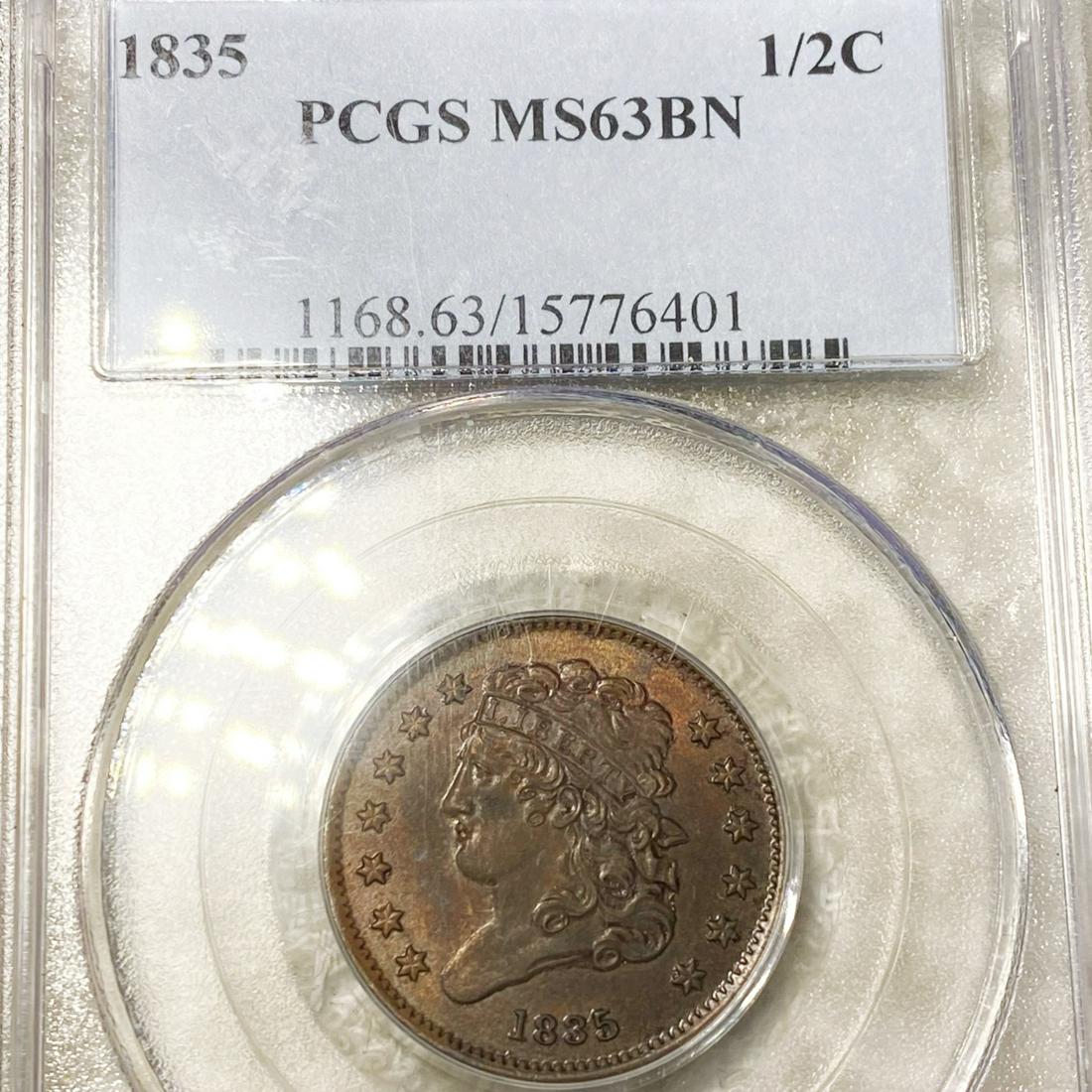 1835 Classic Head Half Cent PCGS - MS 63 BN