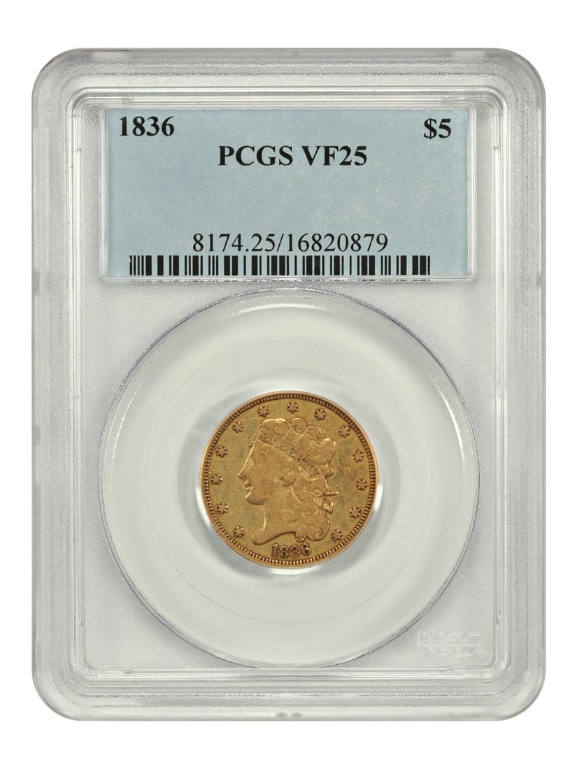 1836 $5 PCGS VF25 - Classic Head $5