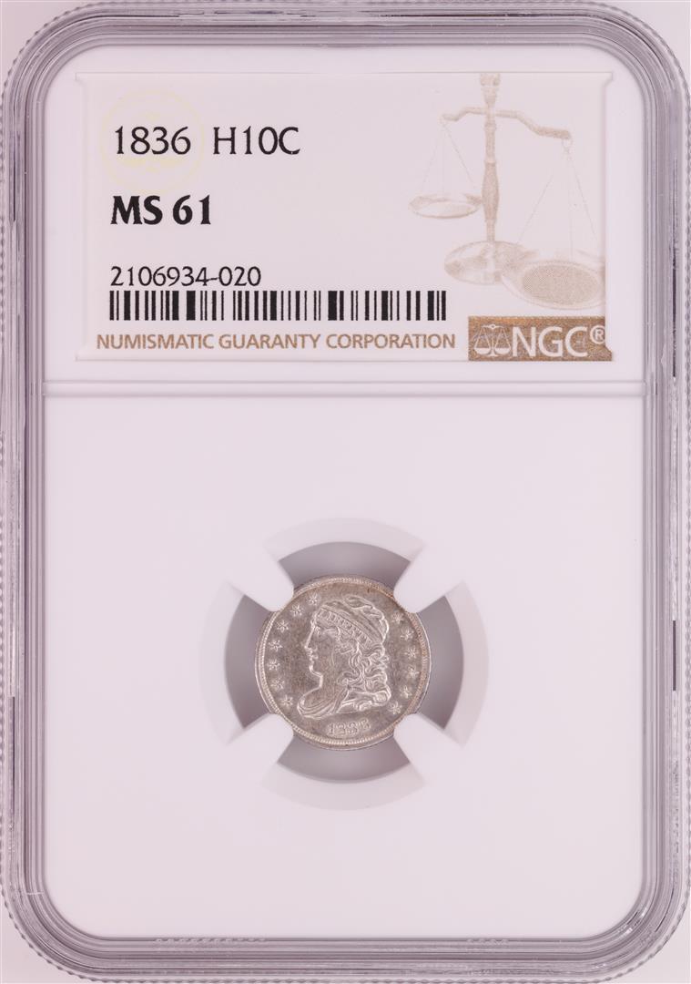 1836 Capped Bust Half Dime Coin NGC MS61